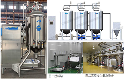 優(yōu)康恩自動化料系統(tǒng)用于對粉料和其它配料進行乳化和水化的混料系統(tǒng)設備。其中真空混料機可在密閉真空容器下進行高速剪切乳化混合綜合產(chǎn)品、各種粉末和液體等,每小時化粉量可達到3T-5T。優(yōu)康恩自動化料系統(tǒng)可利用真空作用將配料輸送到化料設備中,省去了操作工承擔這項繁重工作的需要。